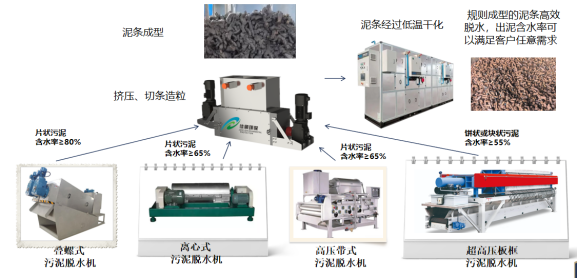 1、污泥類型多樣化:適用于疊螺機、離心機、高壓帶機、高壓板框壓榨機以及其他設(shè)備生產(chǎn)出來的片狀或塊狀污泥;