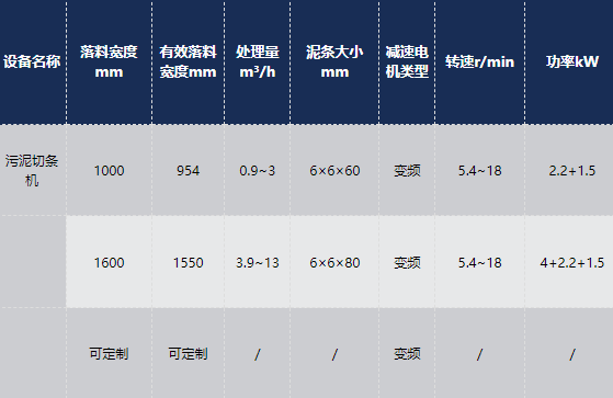 污泥切條為污泥烘干處置工藝中必不可少的一項工序,污泥切條成型,一方面增加污泥與空氣接觸的表面積,使污泥中的水分快速分離出來,提高污泥干化速度,降低能耗。另一方面厚度均勻且成型的泥條,不容易粘連堵塞烘干網(wǎng)帶,降低網(wǎng)帶的清理維護成本。污泥切條機為污泥處置生產(chǎn)線運作生產(chǎn)出了厚度均勻且成型的污泥條,實現(xiàn)了整個產(chǎn)線設(shè)備的節(jié)能,污泥脫水等目標。